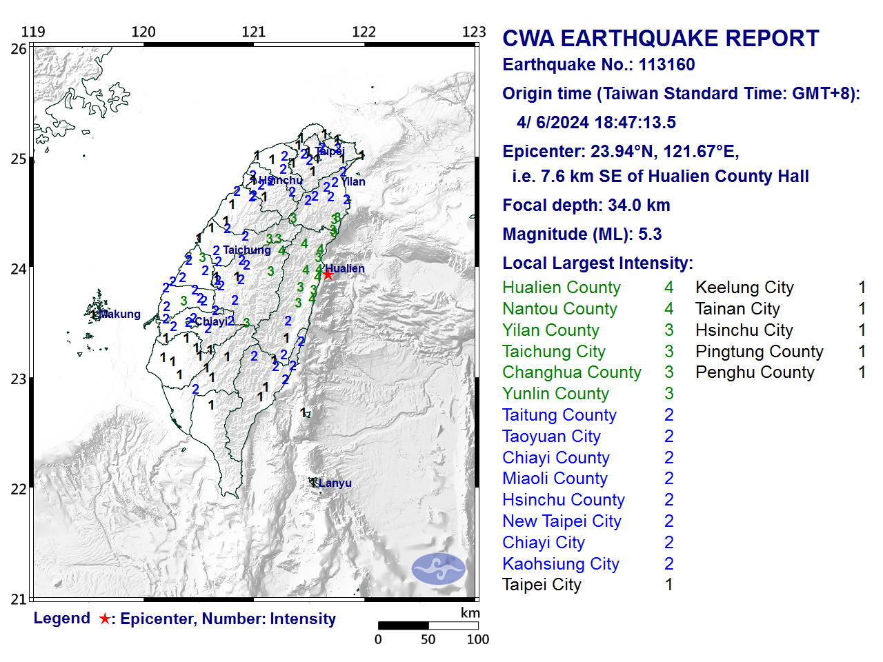 Origin time (Taiwan Standard Time: GMT+08:00): 4/ 6/2024 18:47:13.5