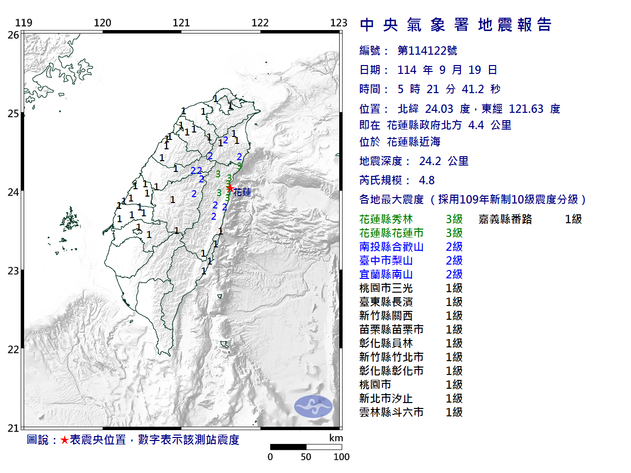 | 中央氣象署地震測報中心 第122號有感地震報告 |